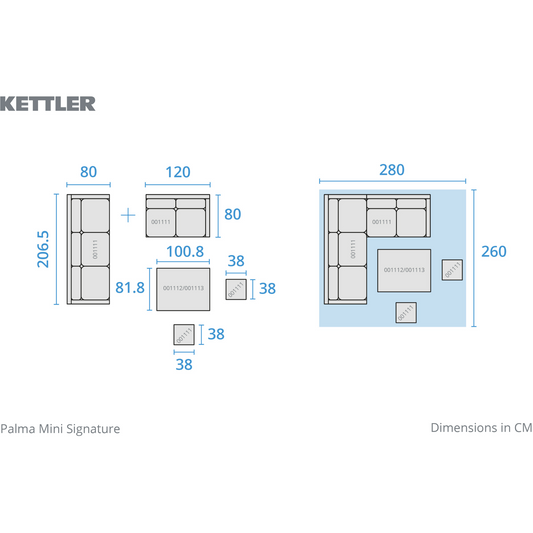 Kettler Palma Signature Mini Corner Sofa with Grey Taupe Cushion No Table | Whitewash Rattan