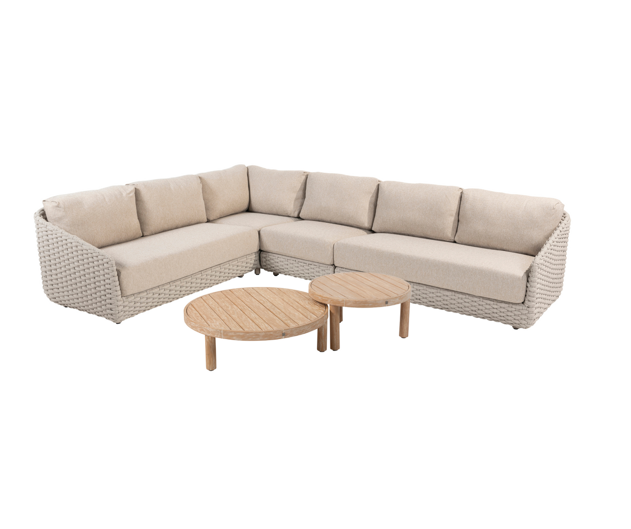 4SO Casanova Modular Outdoor Corner Big Sofa in latte with Sem Brushed Teak Tables