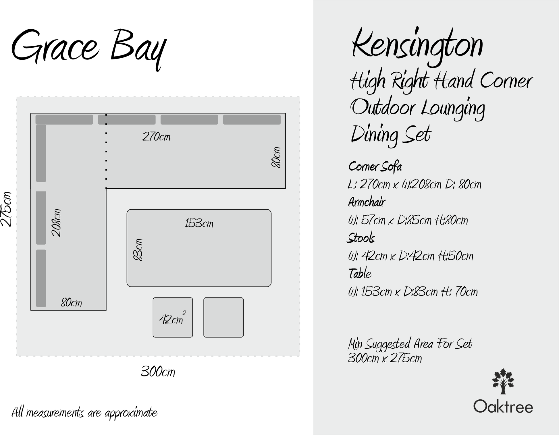 - Right Hand Corner Sofa: 270cm x :208cm D: 80cm